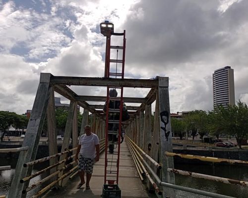 PREFEITURA FAZ REPOSIÇÃO DE LUMINÁRIAS E CABOS ELÉTRICOS NA PASSARELA DA ILHA DO JEGUE
