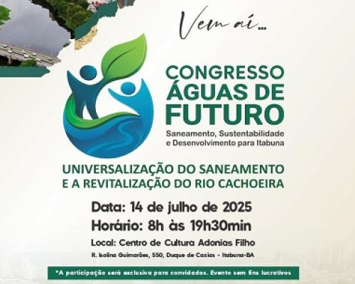 CONGRESSO ÁGUAS DO FUTURO VAI DSCUTIR SANEAMENTO E REVITALIZAÇÃO DO RIO CACHOEIRA
